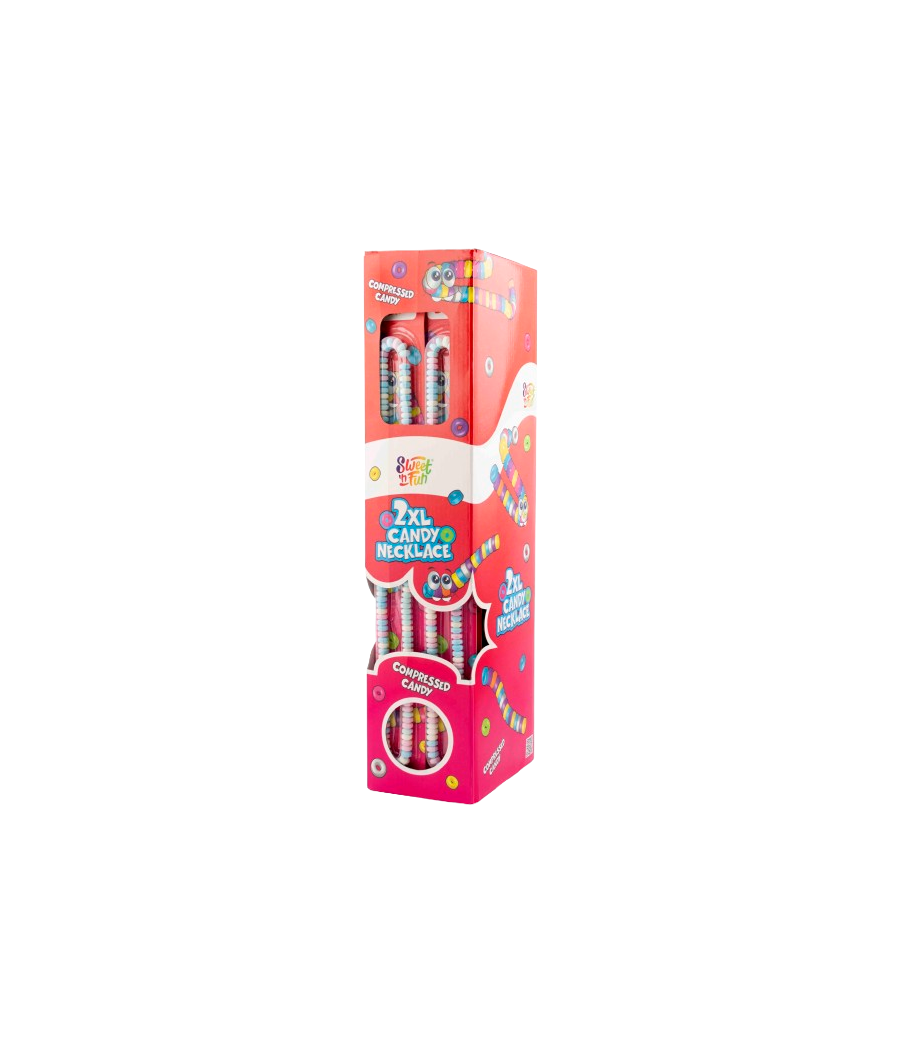 Colier dulce cu comprimate aromate, ambalat individual și gata de purtat. Un produs jucăuș și nostalgic, apreciat de copii pentru culorile vii și forma sa haioasă. Ideal pentru pachete cadou, serbări, petreceri și surprize în colectivități.