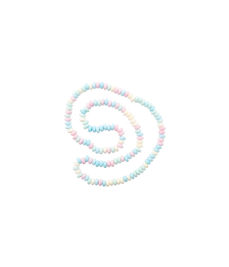 Colierul Lung cu comprimate este un dulce clasic îndrăgit de copii, care combină gustul plăcut al tabletelor aromate cu elementul de joacă. Fiind purtabil ca accesoriu, devine imediat o distracție, iar culorile pastelate și forma ușor de recunoscut îl fac foarte atractiv în grupurile de copii.