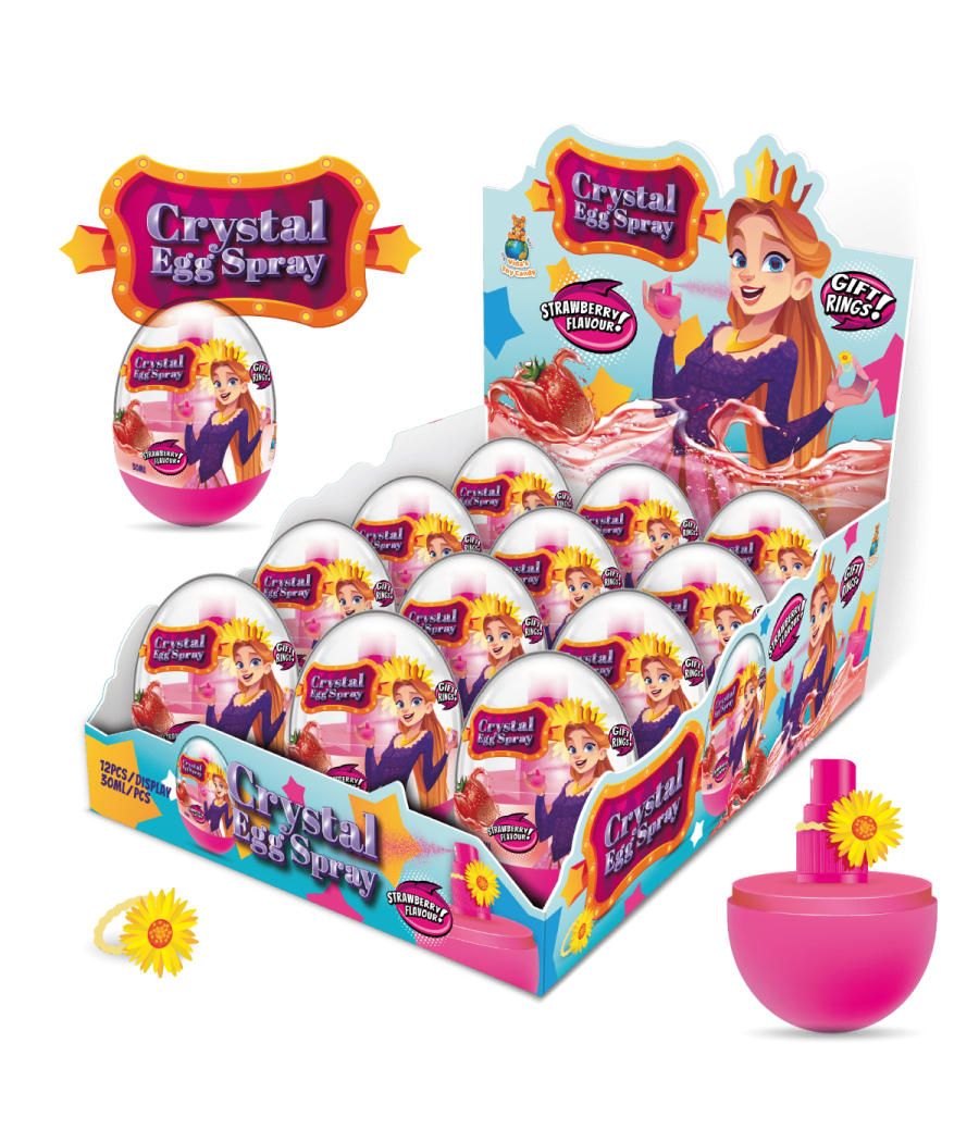 Ou de Cristal cu Inel este un produs surpriză format dintr-un recipient transparent, reutilizabil, umplut cu dulciuri și un inel jucăuș. Copiii sunt atrași atât de gustul dulce, cât și de momentul de descoperire a jucăriei din interior. Recipientul poate fi păstrat pentru depozitarea altor mici obiecte sau pentru joacă.