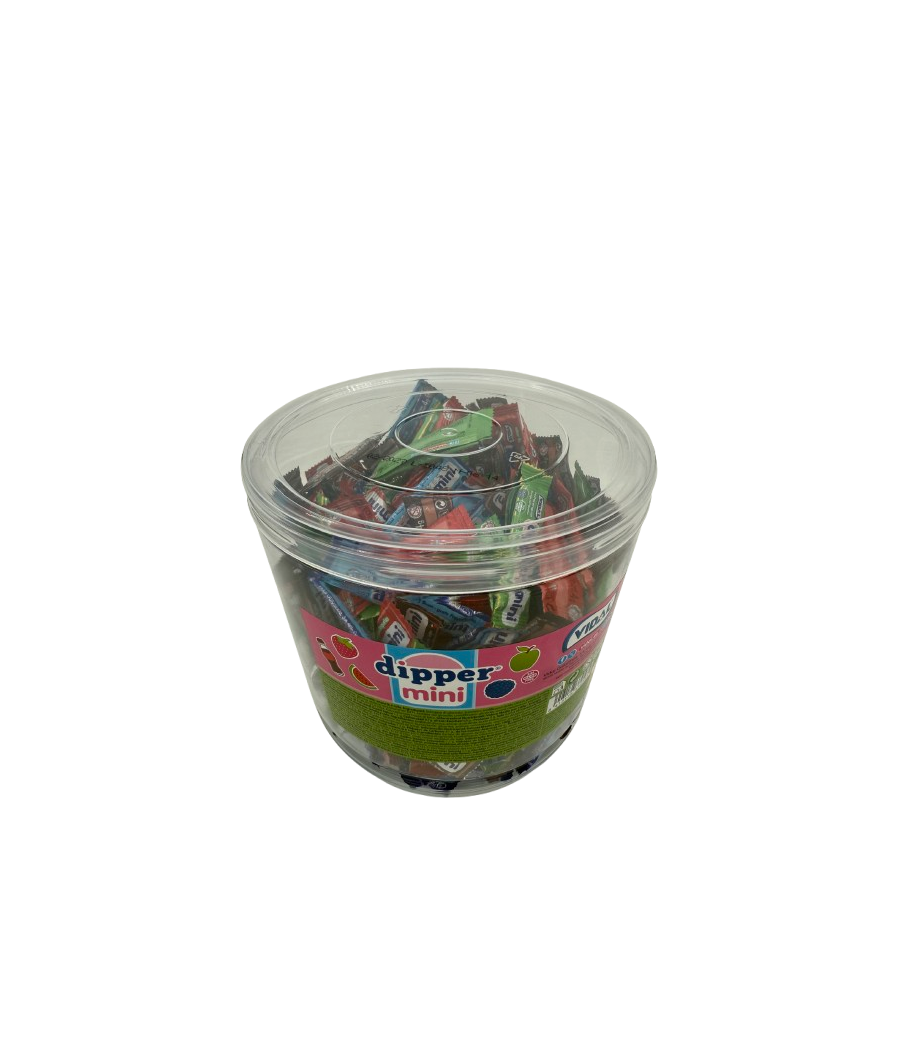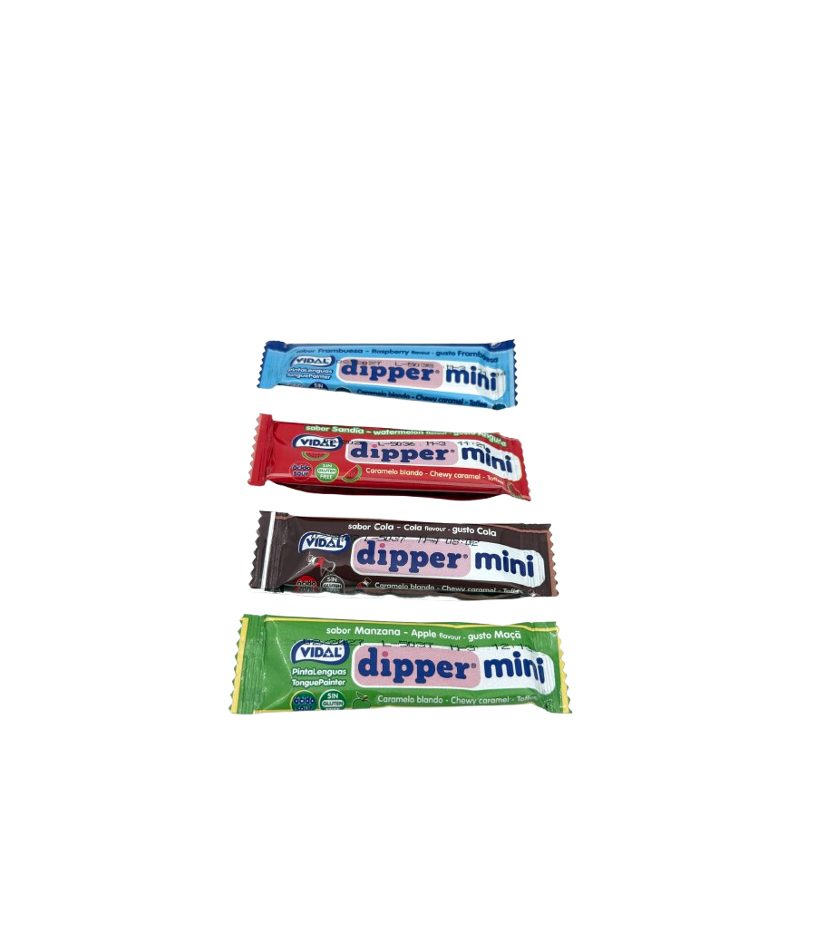 Fie că dorești să aduci un zâmbet pe chipul copiilor cu efectul de colorare a limbii sau cauți un mix variat de caramele de înaltă calitate, Vidal Dipper Mini este soluția. Popularitatea brandului Vidal și siguranța oferită de absența glutenului fac din acest produs un succes garantat. Comandă acum display-ul de 250 de bucăți și adu diversitatea și culoarea Dipper în oferta ta de dulciuri!