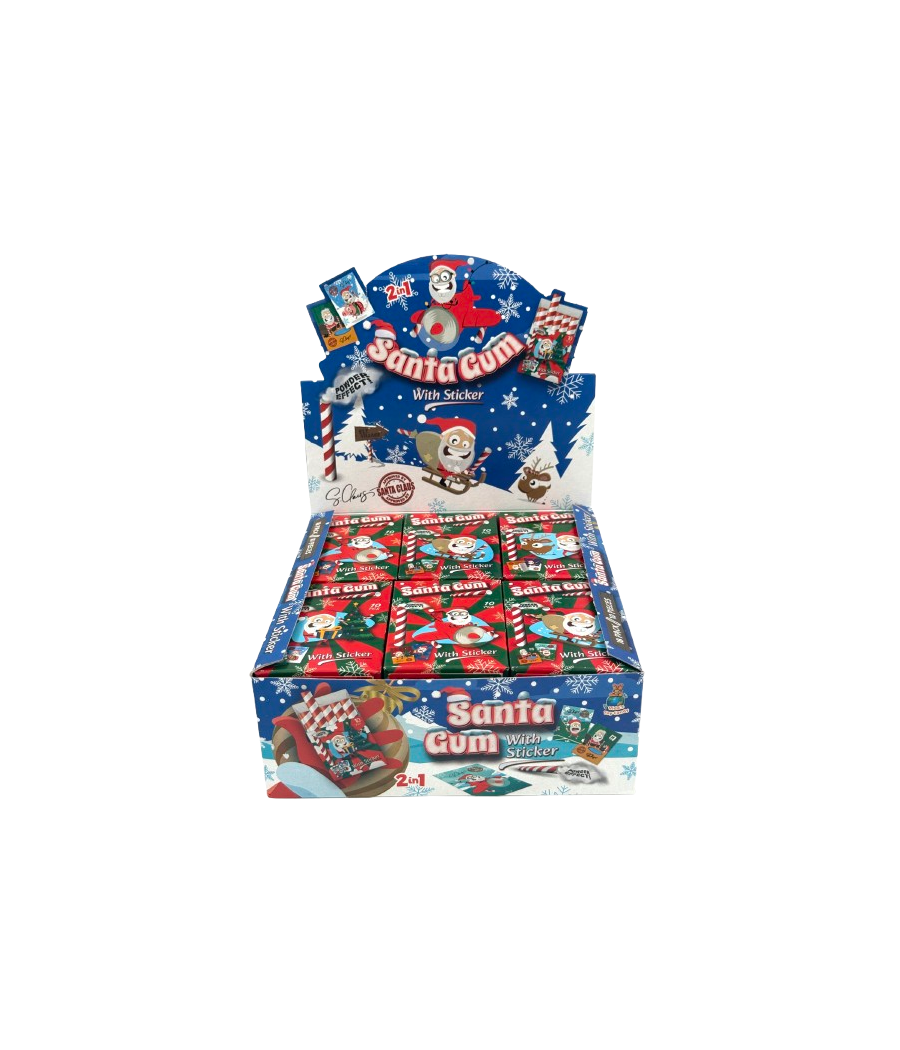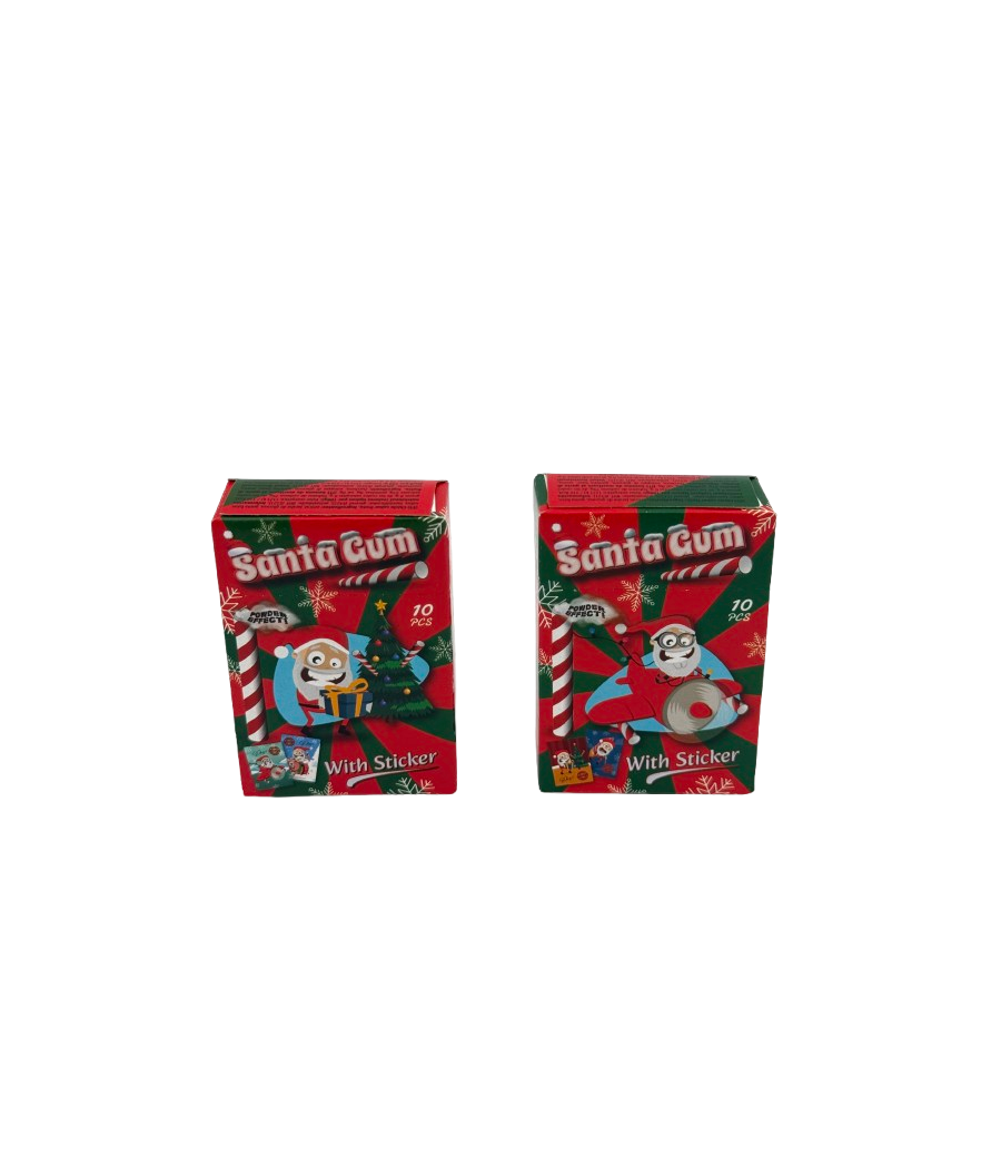 Gumă de mestecat ambalată sub formă de creion cu tematică de Crăciun. Design vesel, cu personaje și elemente de iarnă, preferat de copii în perioada sărbătorilor. Ambalare individuală, potrivită pentru pachete de Moș Crăciun, serbări, cadouri școlare și distribuire în colectivități.