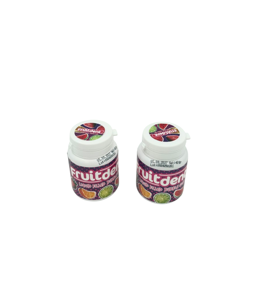 Guma Fruitdent vine ambalată într-un flacon modern și rezistent, dotat cu un capac sigur care protejează drajeurile de umiditate și impurități. Acest format este extrem de apreciat de consumatorii activi, fiind ușor de utilizat cu o singură mână și potrivindu-se perfect în suportul de pahare al mașinii sau în compartimentele rucsacului.