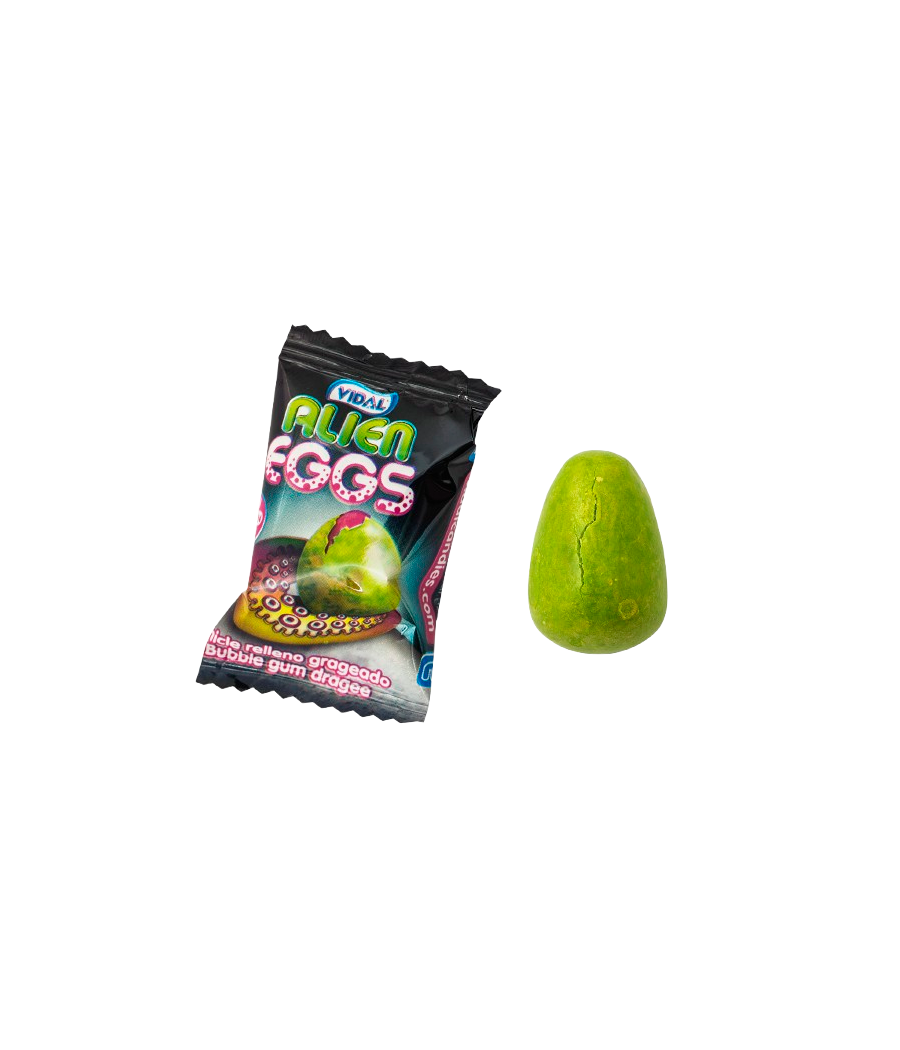Guma de mestecat Vidal Alien Eggs te invită într-o aventură gustativă dintr-o altă galaxie. Aceste drajeuri de gumă, modelate sub formă de ouă extraterestre, ascund un interior umplut (miez lichid) care explodează de savoare la fiecare mușcătură. Fiind certificate fără gluten și ambalate individual, reprezintă alegerea ideală pentru petreceri tematice, Halloween sau pentru un răsfăț zilnic plin de imaginație.