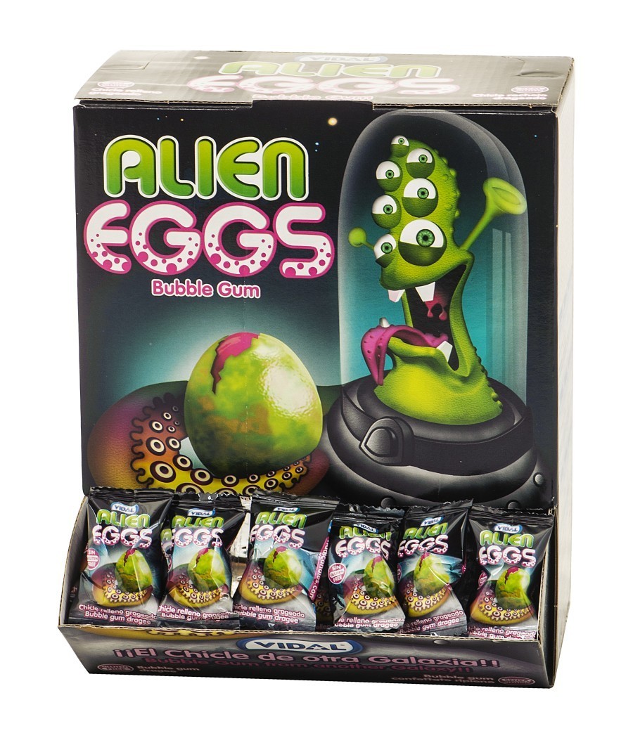 Dacă ești în căutarea unui produs care să combine inovația, designul captivant și siguranța alimentară, Vidal Alien Eggs este soluția. Popularitatea tematicilor extraterestre și calitatea recunoscută a brandului Vidal fac din aceste gume un succes garantat. Comandă acum display-ul de 200 de bucăți și adu o notă de mister și savoare intergalactică în oferta ta de dulciuri!
