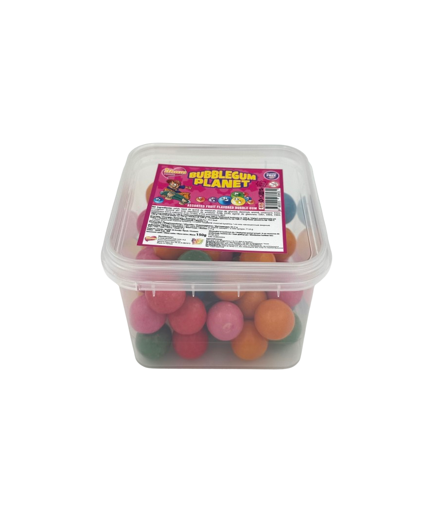 Descoperă universul distracției cu Guma de mestecat Bubblegum Planet. Aceste bile de gumă sunt concepute special pentru a capta atenția prin nuanțele lor vii de roz, portocaliu, albastru și verde. Fiecare culoare corespunde unei arome de fructe delicioase, oferind o experiență de mestecat prelungită și satisfăcătoare, perfectă pentru a face cele mai mari baloane de gumă.