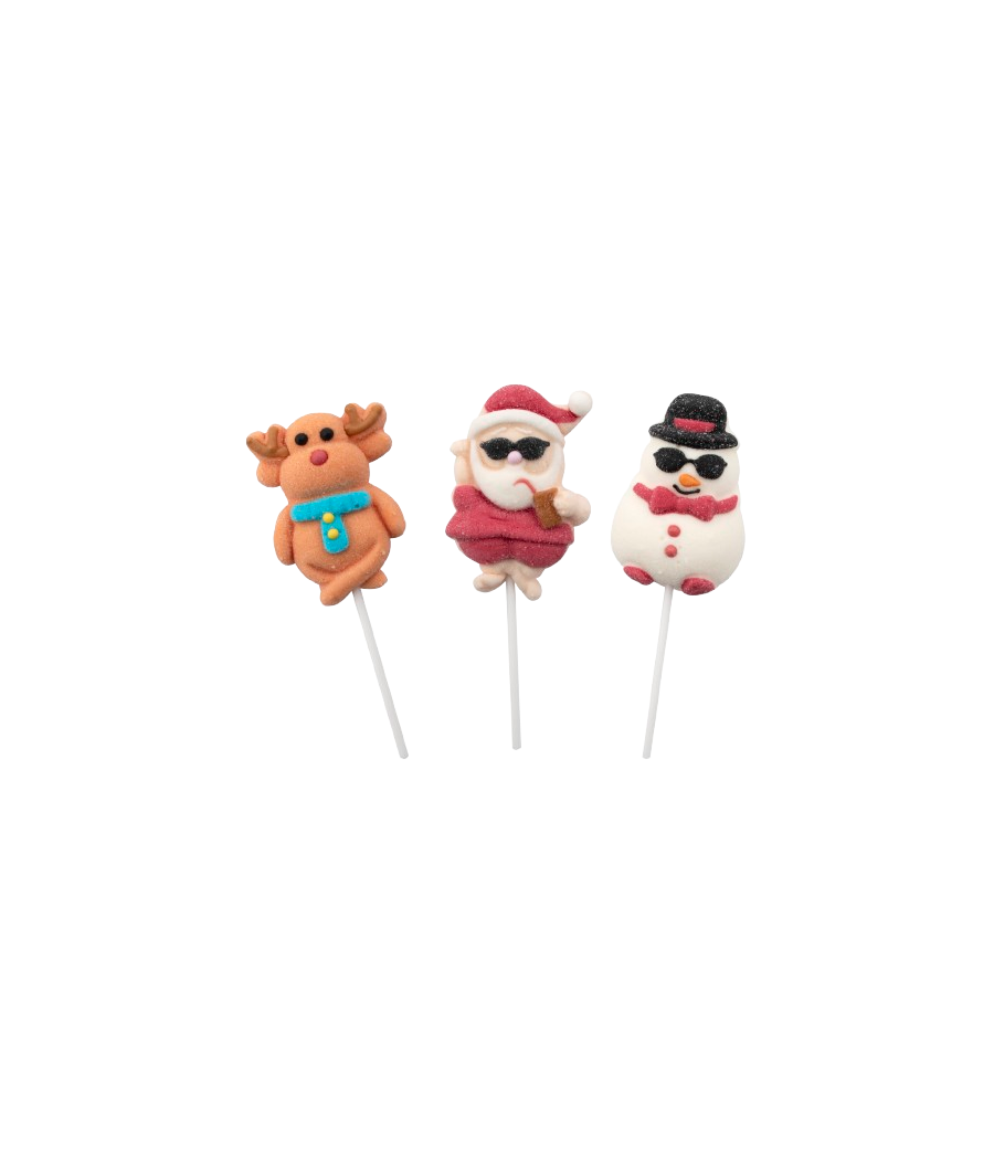 Jeleuri pufoase pe băț, în forme simpatice de Crăciun, colorate și adorate de cei mici. Ideale pentru pachete festive, serbări și surprize dulci de sărbători. 🎅