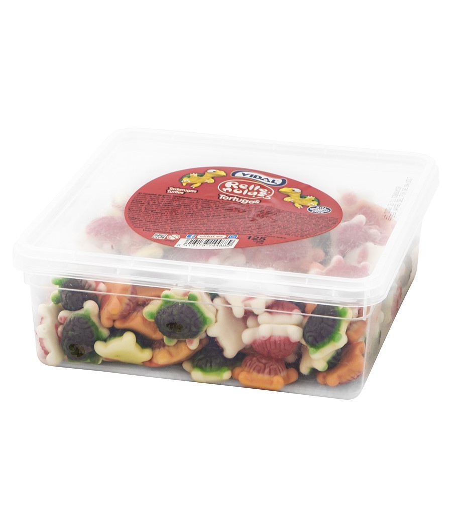 Produsul este livrat într-o cutie transparentă rezistentă, special concepută pentru a proteja formele detaliate ale țestoaselor și pentru a menține prospețimea aromei. Cu un conținut generos de 125 de unități, acest format este extrem de practic pentru retaileri sau pentru cei care doresc să organizeze evenimente tematice memorabile, oferind un impact vizual deosebit pe orice raft sau masă festivă.