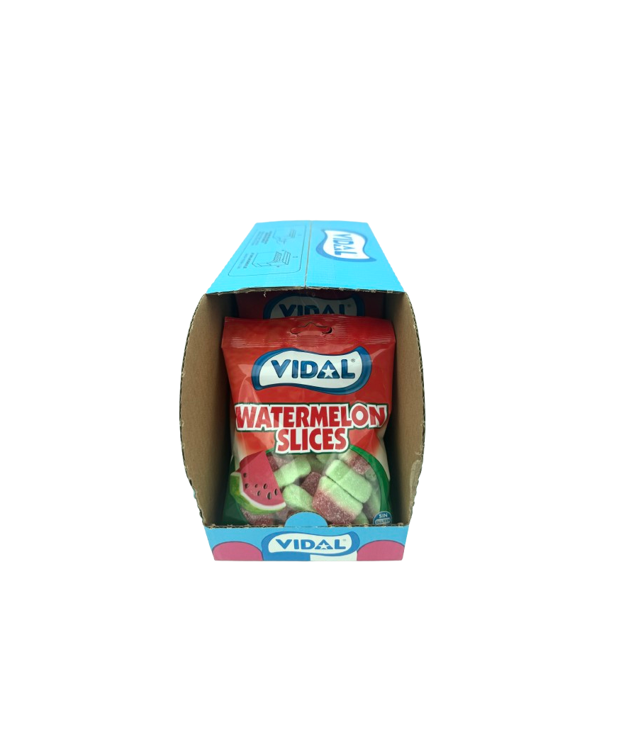 Indiferent că ești un retailer în căutarea unui produs cu cerere mare sau un consumator pasionat de arome fructate, Vidal Watermelon Slices este alegerea optimă. Combinația dintre brandul de renume, utilizarea coloranților naturali și garanția absenței glutenului face din acest produs un succes garantat. Comandă acum display-ul de 14 pungi și oferă-ți o porție zilnică de prospețime!