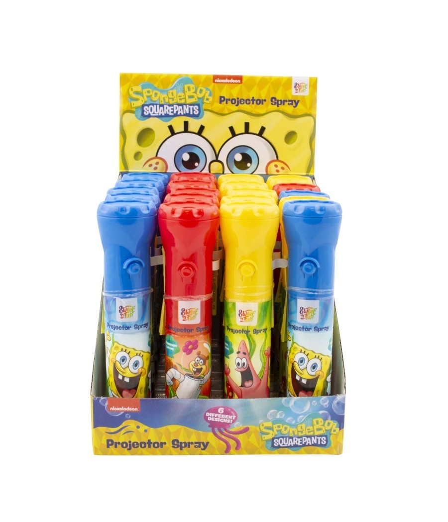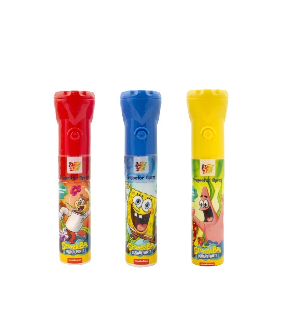 Dulceață și joacă sub lumina lui SpongeBob! Spray-ul Proiector SpongeBob aduce dublă distracție: un delicios spray dulce cu aromă fructată și un mini proiector integrat care luminează scene amuzante din lumea subacvatică. Perfect pentru copii plini de energie!